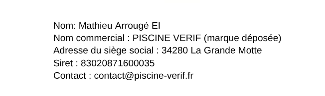 Note : Piscine Vérif assure la coordination, la sécurisation du paiement et la charte de qualité, mais les prestations techniques sont réalisées par des partenaires certifiés sous leur propre responsabilité professionnelle.
